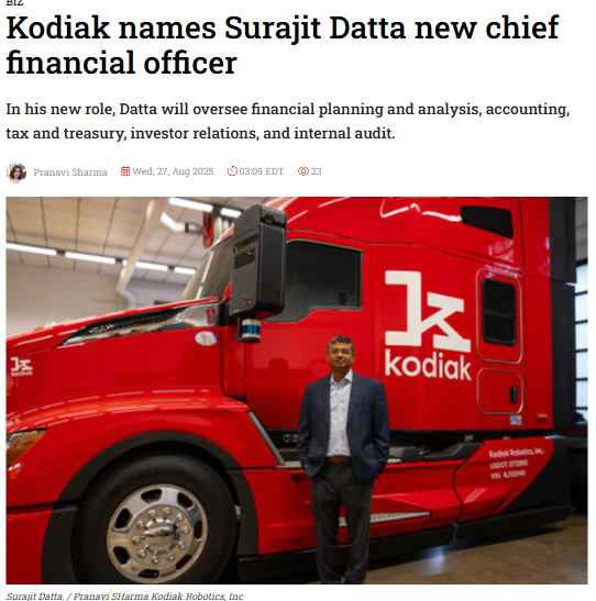 Kodiak Robotics, Inc. Appoints Surajit Datta as CFO – Reported by New India Abroad