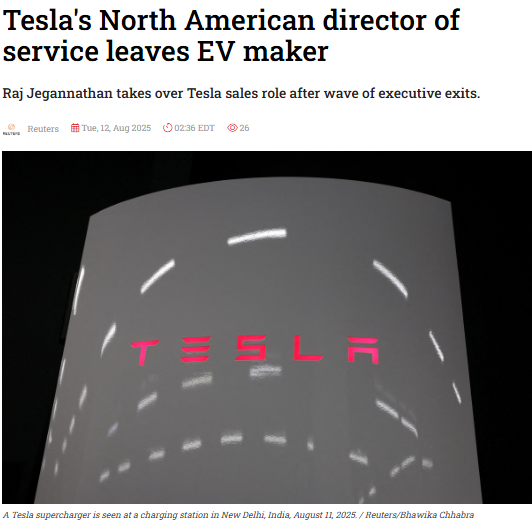 most recent departure is Piero Landolfi, Tesla’s director of service for the
