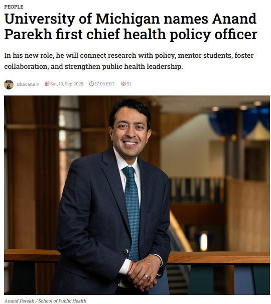 Anand Parekh Appointed Chief Health Policy Officer at U-M